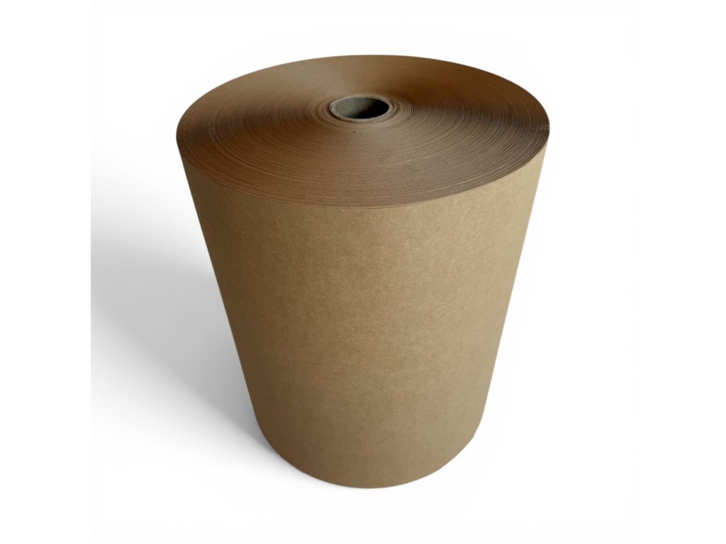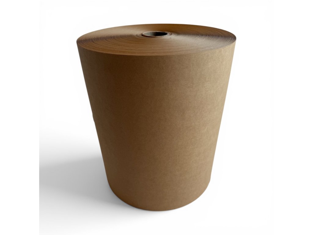 Role KRAFTOVÉHO PAPÍRU určeného k výrobě bublinkového balicího papíru. Tento papír je pomocí strojového lisování přetvořen v efektivní a hlavně ekologickou a plně biologicky rozložitelnou alternativu k bublinkové folii, která slouží k ochraně výrobků uvnitř balení. Papír je ve speciálním stroji vylisován do tvaru polokulových "bublin". Stroj je vybaven manuálním nožem, kterým odříznete přesně tu část, kterou potřebujete. Tento balicí papír tvoří, společně s krabicí a například v kombinaci s naší papírovou lepící páskou, jednodruhový obal, který je snadné zrecyklovat.